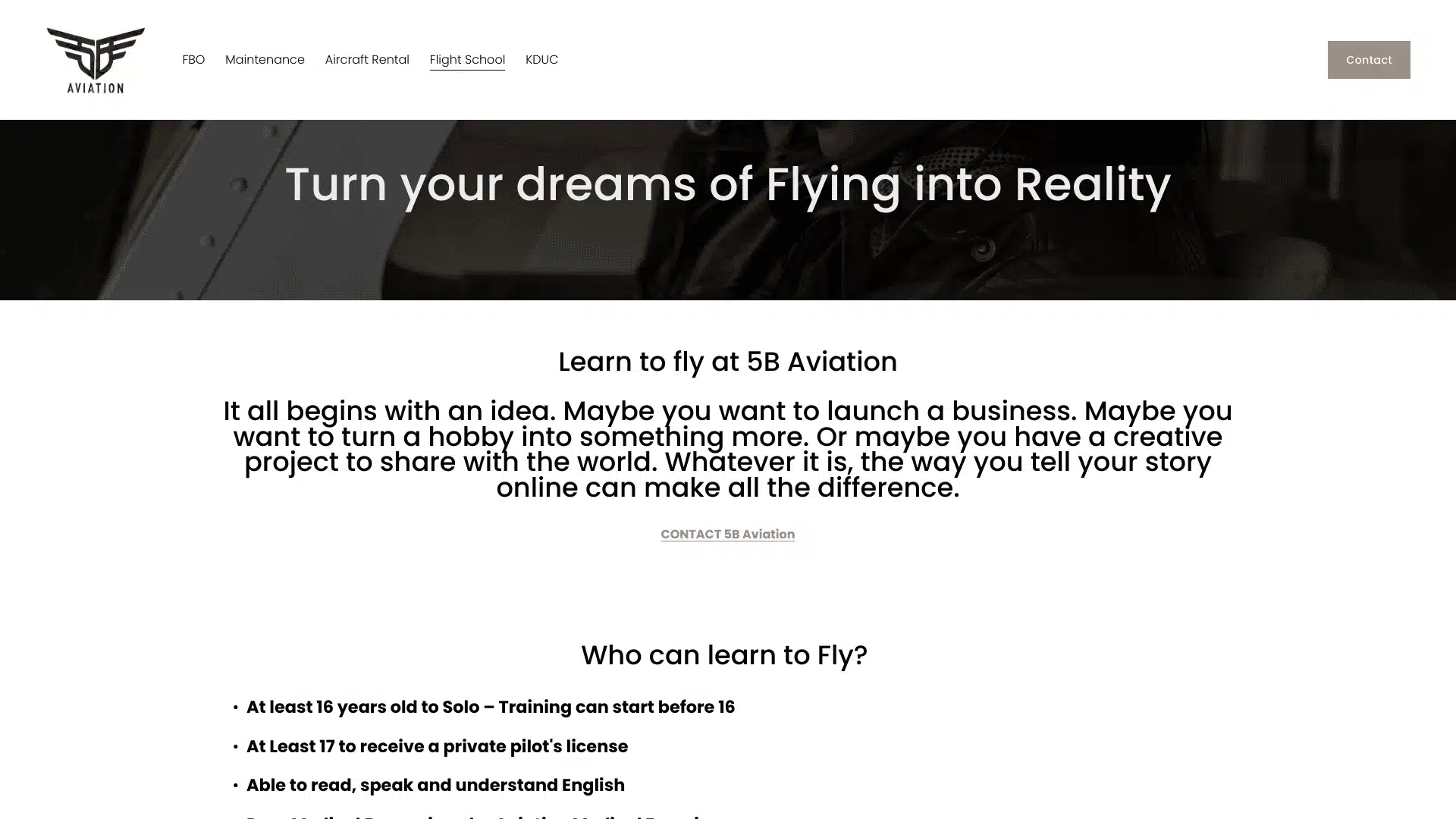 Ever dreamed of soaring through the skies? At 5B Aviation, LLC, we turn those dreams into reality! With over 15 years of experience in flight training, our expert instructors guide you through every stage of your aviation journey. Whether you’re just starting or looking to elevate your skills to new heights, we have tailored programs designed just for you!