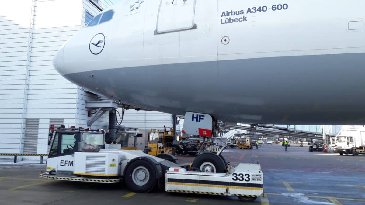 Towbarless tractors allow attachment (docking) without having to lift or move plane-unique function only offered by Kalmar Motor. TBL 800 is first ever hybrid tractor that can handle wide body aircraft using electrical power. This enables towing Airbus A380 with or without personnel in cockpit quickly and safely.