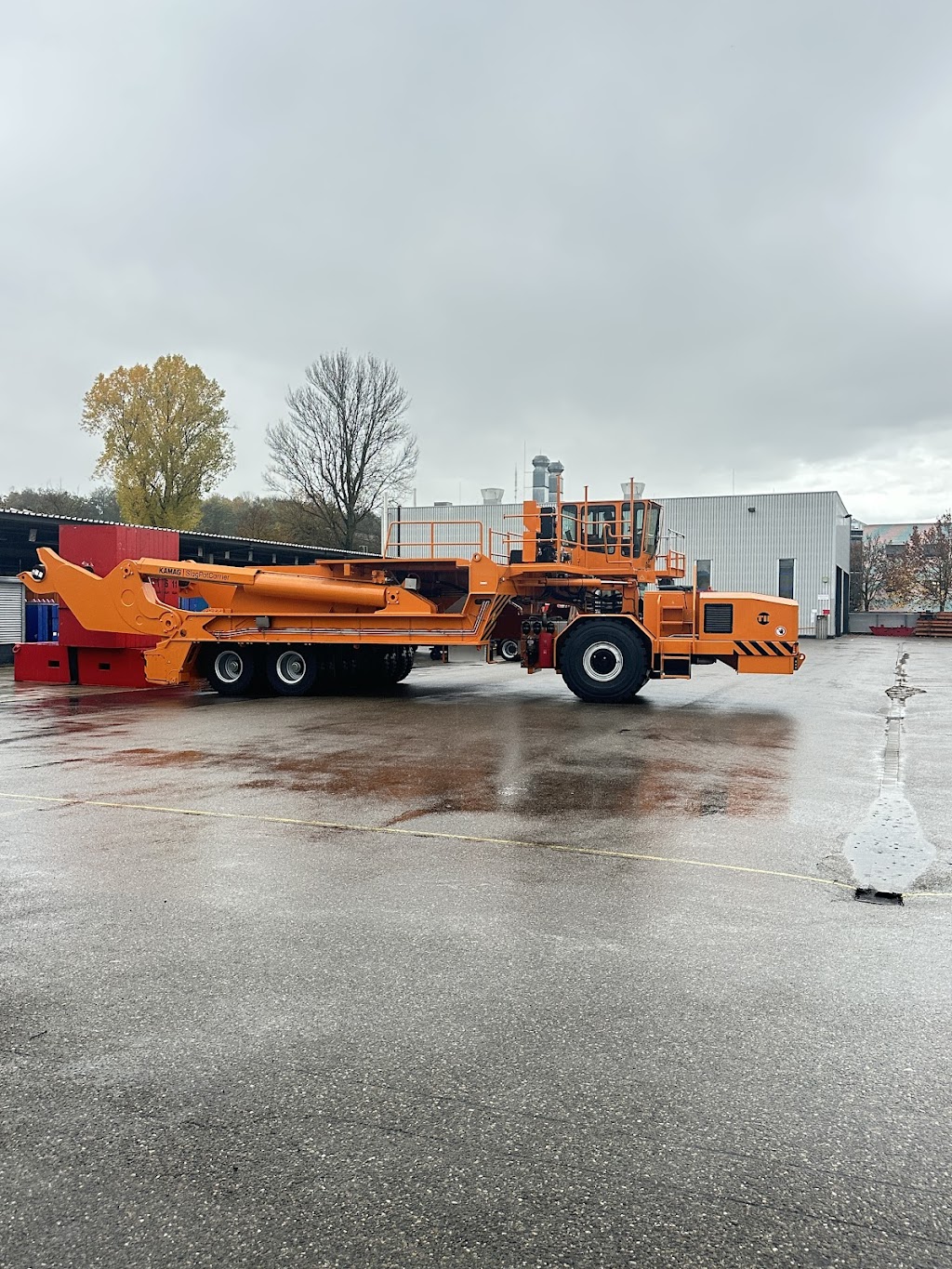 Self-Propelled Modular Transporters (SPMT) handle heavy and oversized cargo requiring distributed load capacity. The KAMAG Precision series ensures utmost accuracy in positioning operations. Metallurgical industry solutions include slag pot carriers (100+ tonne liquid metal capacity), slab carriers, and industry transporters designed for extreme conditions.